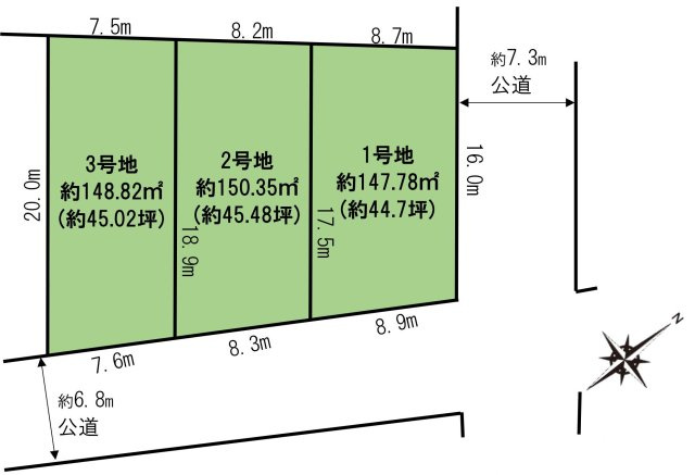 - 三郷市高州3丁目 建築条件無し売地 全3区画 1号地
